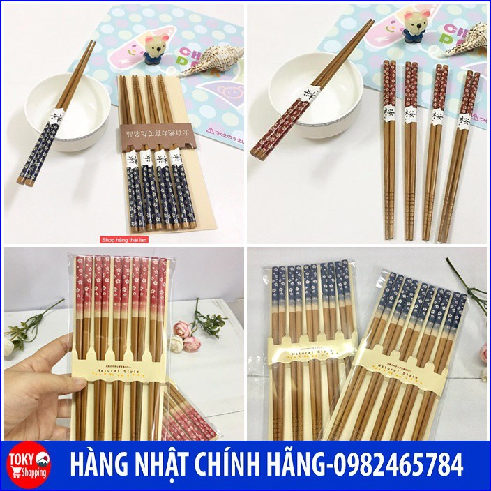Set 5 đôi đũa ăn Nhật mẫu hoa xanh và hoa đỏ Hàng Nhật Chính Hãng