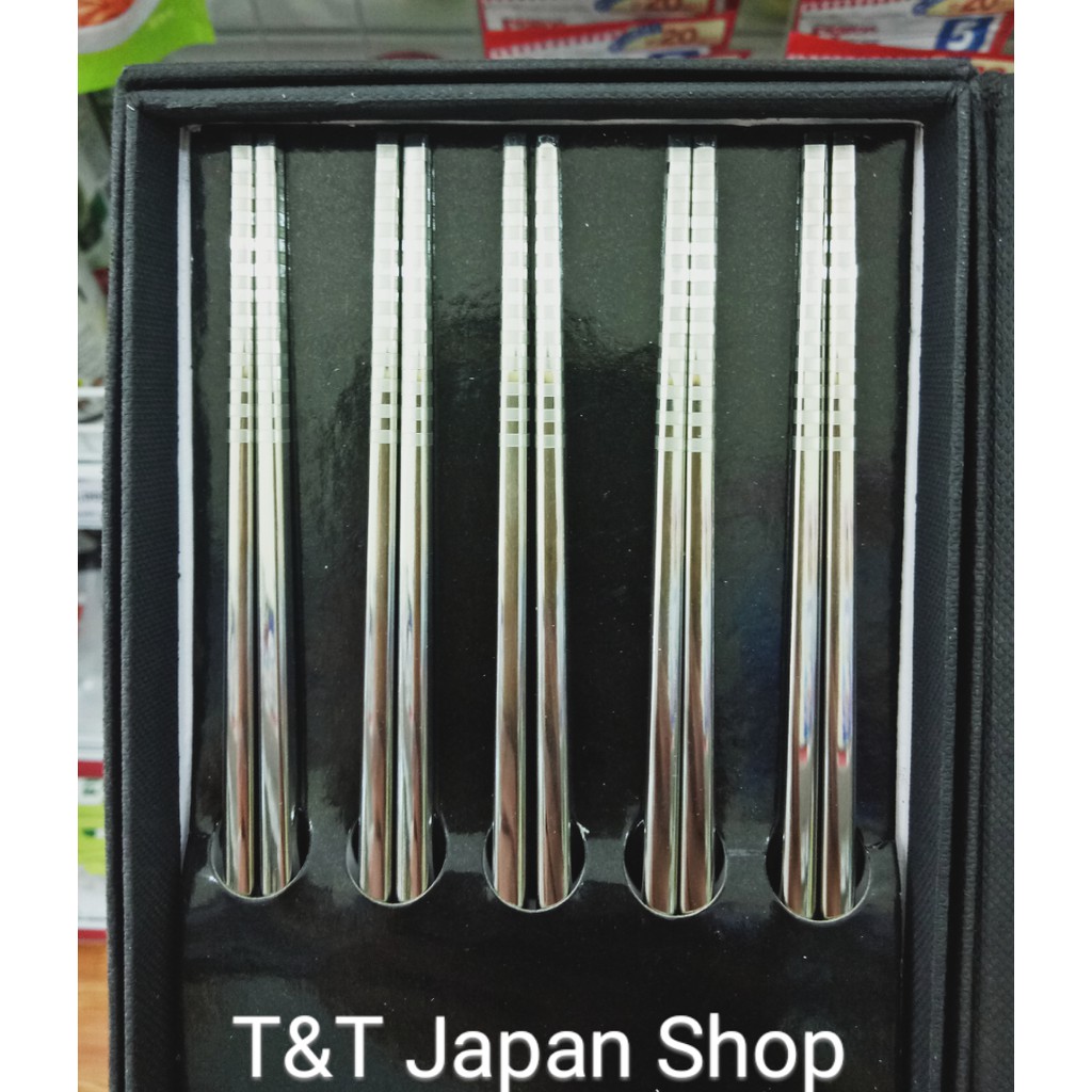 Set 5 đôi đũa hoa văn inox 304 đặc ruột Nhật------------------------------------------------------------