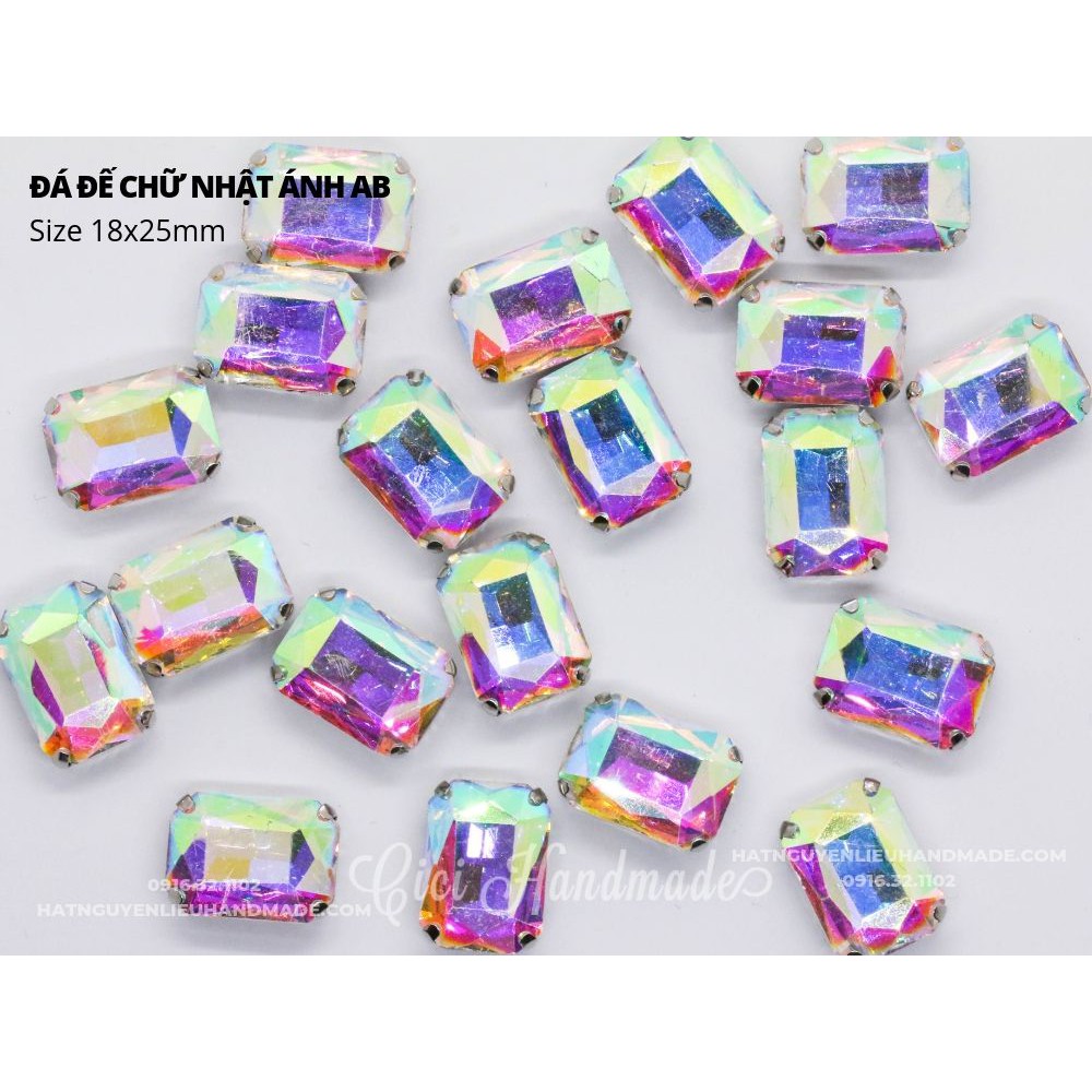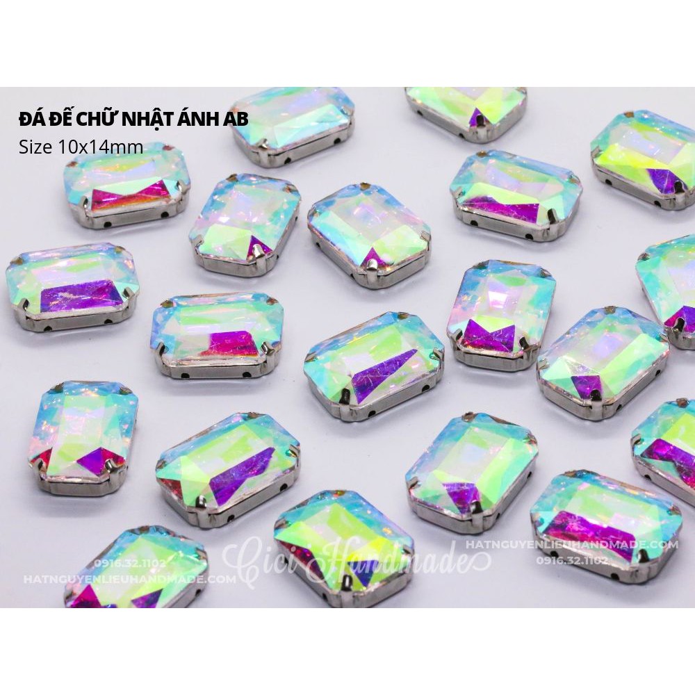 Set 5 hạt đá đế hình chữ nhật ánh AB