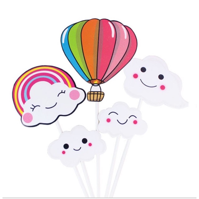 Set 5 Hình Cắm Mẫu Cầu Vồng Khí Cầu Trang Trí Bánh Kem Bánh Sinh NhậtSet 5 hình cắm cầu vồng khí cầu trang trí bánh, topper cake.