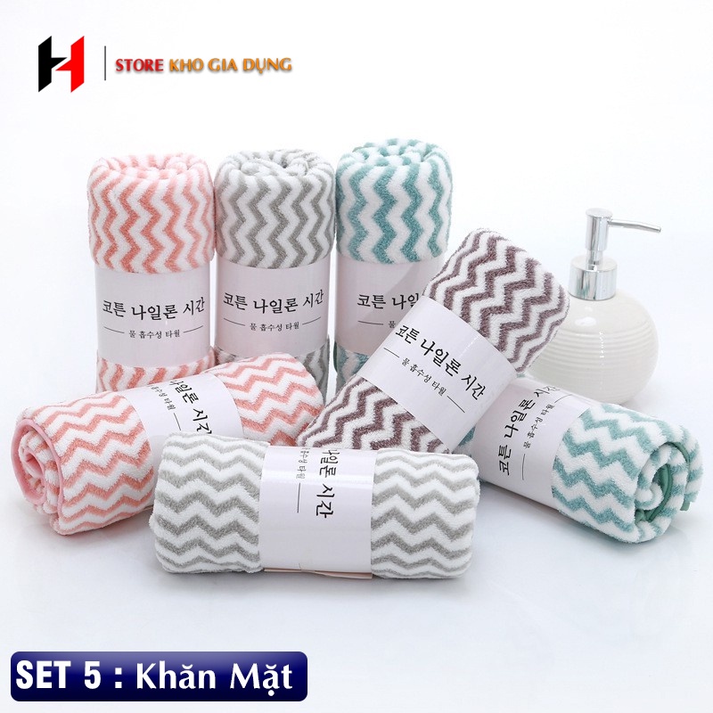 Set 5 Khăn Mặt Hàn Kẻ, Mềm Mịn, Thấm Hút Siêu Tốt 30x50cm