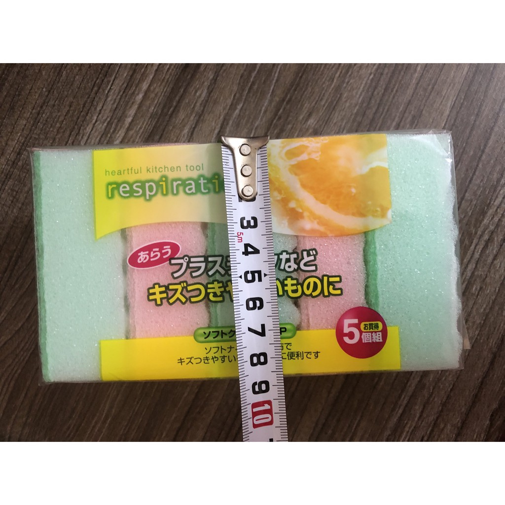 "- Chất liệu: mút, sợi tổng hợp. Một mặt được gắn miếng làm ráp giúp đánh rửa xoong nồi.- Kích thước: 15cm x 8cm ( cả set nguyên túi )