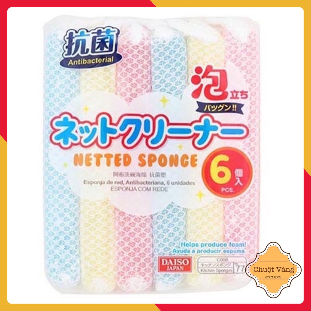 Miếng mút rửa chén bát bọc lưới Daiso Nhật Bản bọt biển rửa bát tạo bọtThông số kỹ thuật: