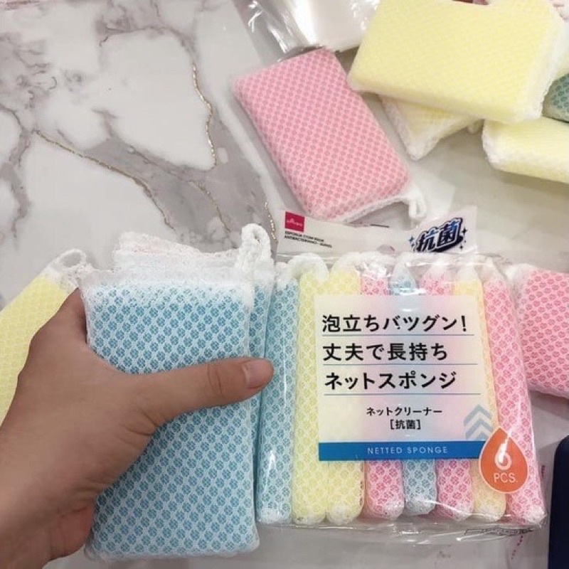 Nhà cửa & Đời sống > Dụng cụ chăm sóc nhà cửa > Miếng bọt biển, miếng chà vệ sinh || Set 5 mút rửa chén bát bọc lưới tạo bọt Daiso NhậtCòn hàng