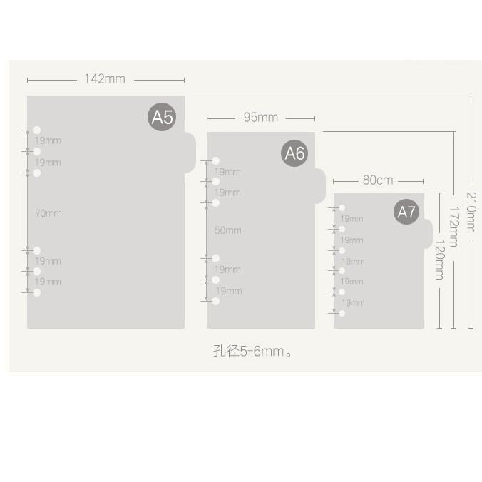 Set 5 tab phân trang giấy trơn màu 6 lỗ
