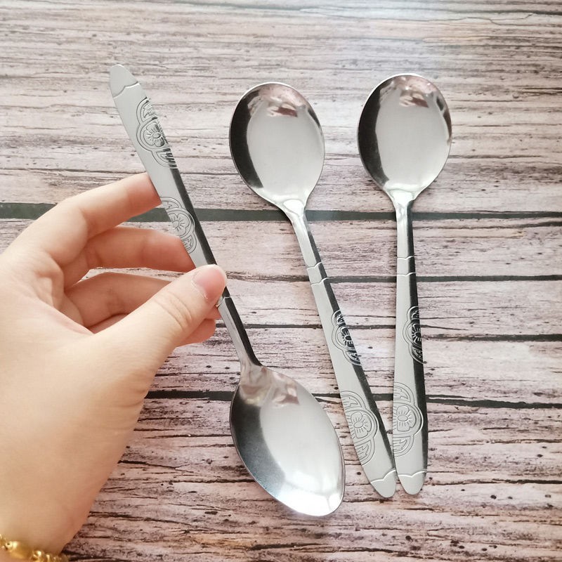 Thìa inox không gỉ . đầu tròn ,đầu dẹt tùy khách chọn lựa .hoa văn đẹp thích hợp dùng ăn cơm ,ăn cháo ,uống nước .....