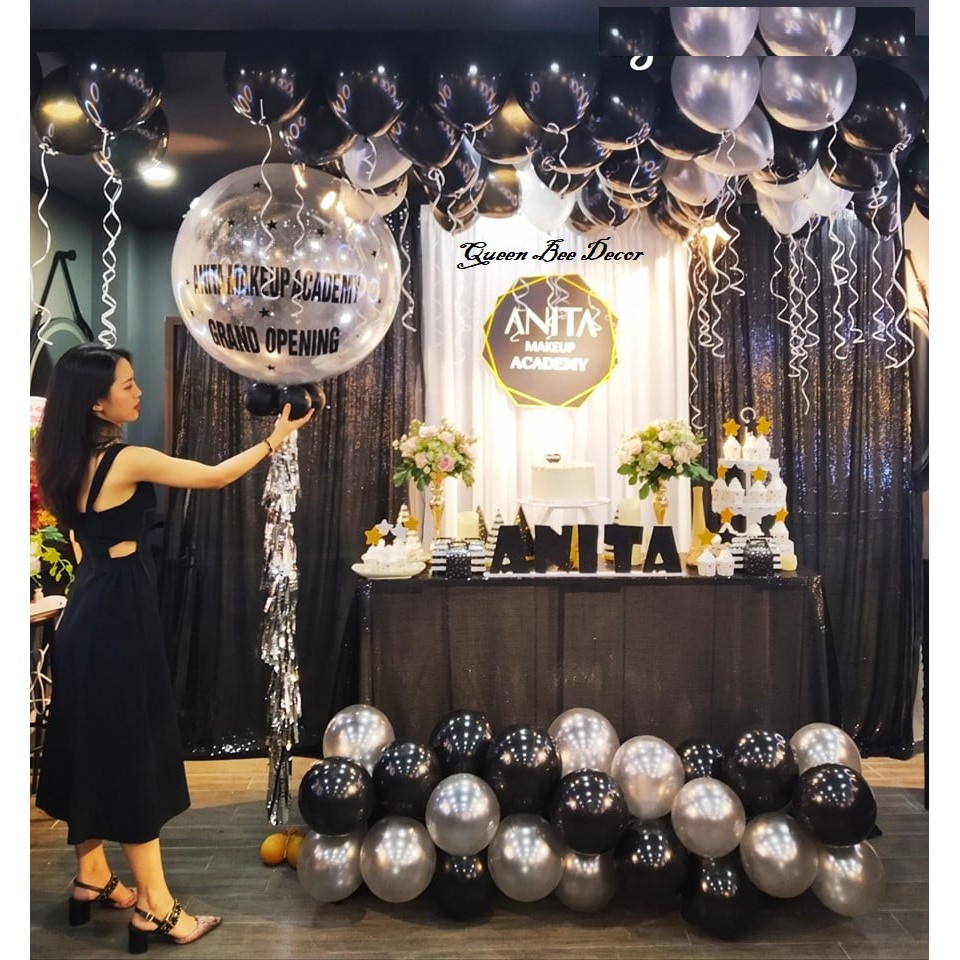 Giới thiệu Set 50 Bóng Bay Nhũ Queen Bee Màu Đen Và Ghi Bạc