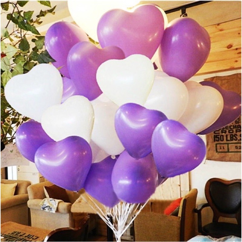 Nhà cửa & Đời sống > Trang trí nhà cửa > Khác || Sét 50 bóng cao su trái Tim trắng/đỏ/tím/hônggCòn hàng