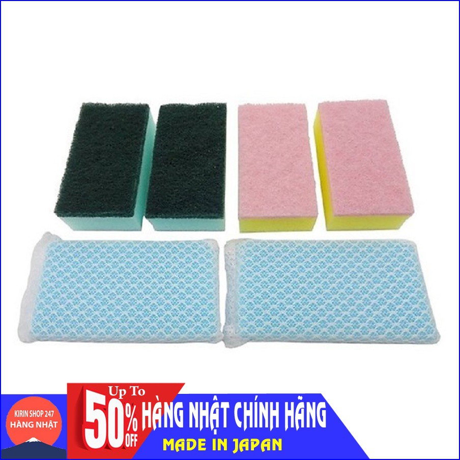 Set 6 miếng mút rửa bát Hàng Nhật- Chất liệu: mút, sợi tổng hợp.