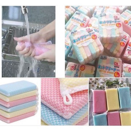 Set 6 Mút Lưới Rửa Chén Tạo Bọt Kháng Khuẩn Xuất Nhật
