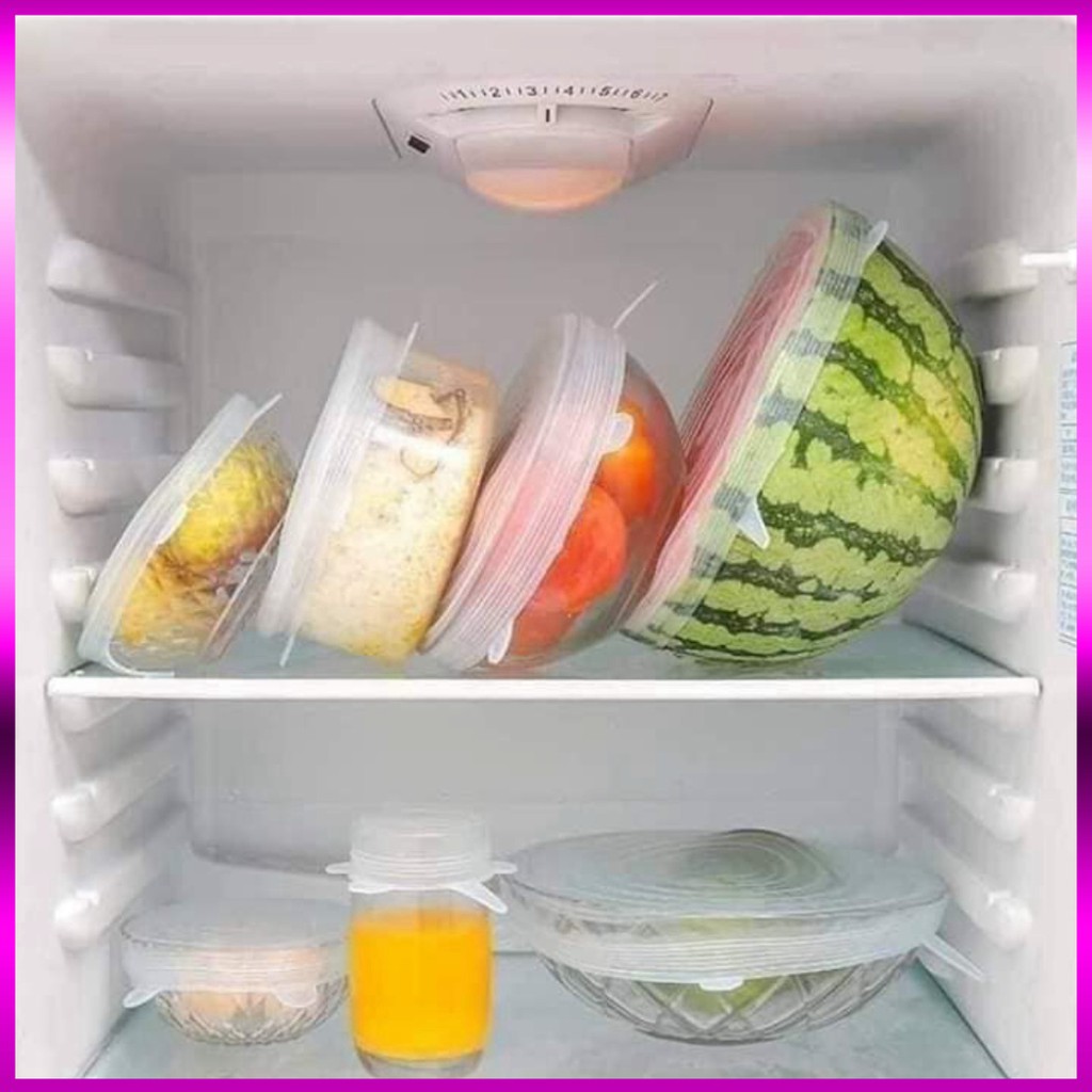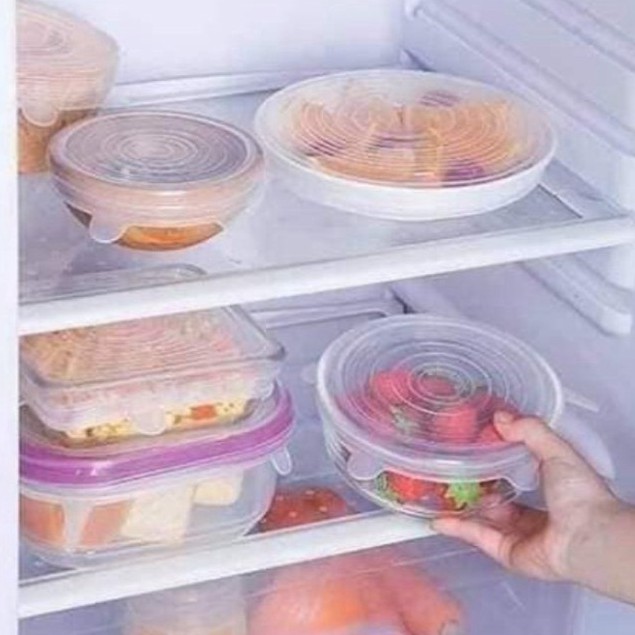 💥1 bộ nắp gồm 6 nắp bọc, nhựa silicon Sử Dụng Được Trong Lò Vi Sóng, máy rửa bát..., có thể kéo giãn để phù hợp với mọi kích cỡ.