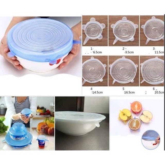 các loại nắp đậy bằng silicon mới mẻ này là giải pháp cho những người nào đang e ngại bọc thực phẩm nilong độc hại cho sức khoẻ.là những loại nắp bằng silicon dẻo mang độ đàn hồi phải chăng Nhiệm vụ của những cái nắp đậy này như vậy như màng bọc thực phẩm nilong quen thuộc, bao bọc miệng của phổ thông dòng bát, bình, đĩa, cốc và cả nửa trái cây sau lúc cắt.