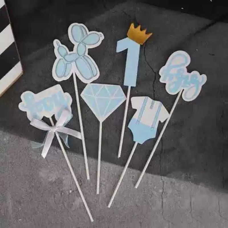 Giới thiệu Set 6 que cắm số 1 cún boy girl trang trí bánh kem