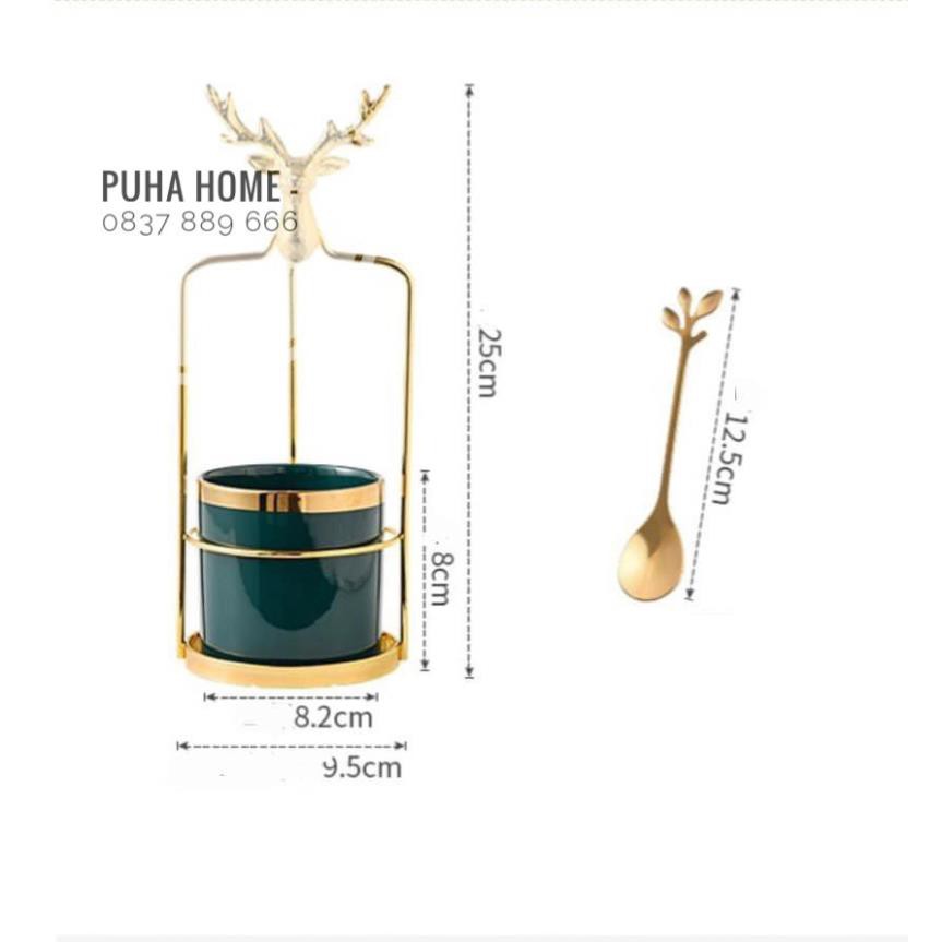 ♥️♥️♥️ SET 6 THÌA CÀ PHÊ, PHA TRÀ KÈM CỐC SỨ ĐỰNG THÌA VÀ LỒNG ĐẦU HƯƠU MẠ VÀNG ♥️♥️♥️🍀 THÔNG TIN SẢN PHẨM