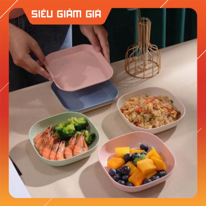 Set 8 đĩa lúa mạch màu pastal siêu xinh, đĩa lúa mạch hình vuông đựng thức ăn, hoa quả, bánh kẹoĐặc điêm nổi bật: