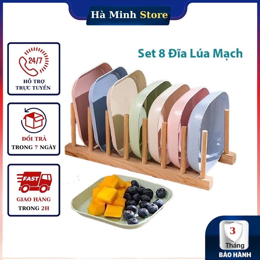 Sét 8 Đĩa Lúa Mạch Chữ Nhật, Màu Pastal, Siêu Xinh Siêu Siêu Ưu Đãi Đĩa Lúa Mạch Cao Cấp - Gia Dụng Hà Minh