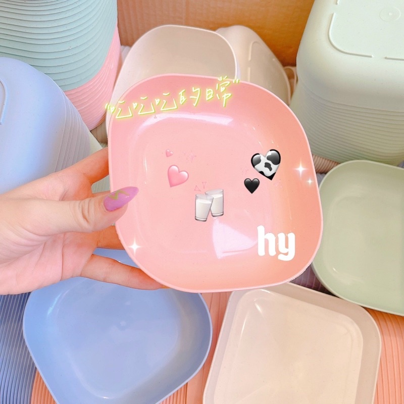 Combo 8 Khay Đĩa Vuông Đựng Thức Ăn Màu Pastel Gồm 2 Cỡ Chất Liệu Nhựa Lúa Mạch Nhựa PP Thực PhẩmNăm ngoái gom tròn roài, năm nay e gom vuông cũng xinh đẹp không kém cạnh nha các chị em ơiii