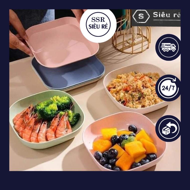 Sét 8 dĩa lúa mạch hình vuông nhiều màuChất liệu: Nhựa lúa mạch cao cấp