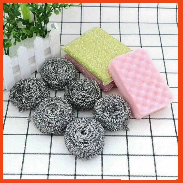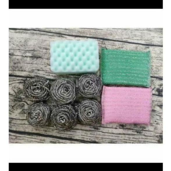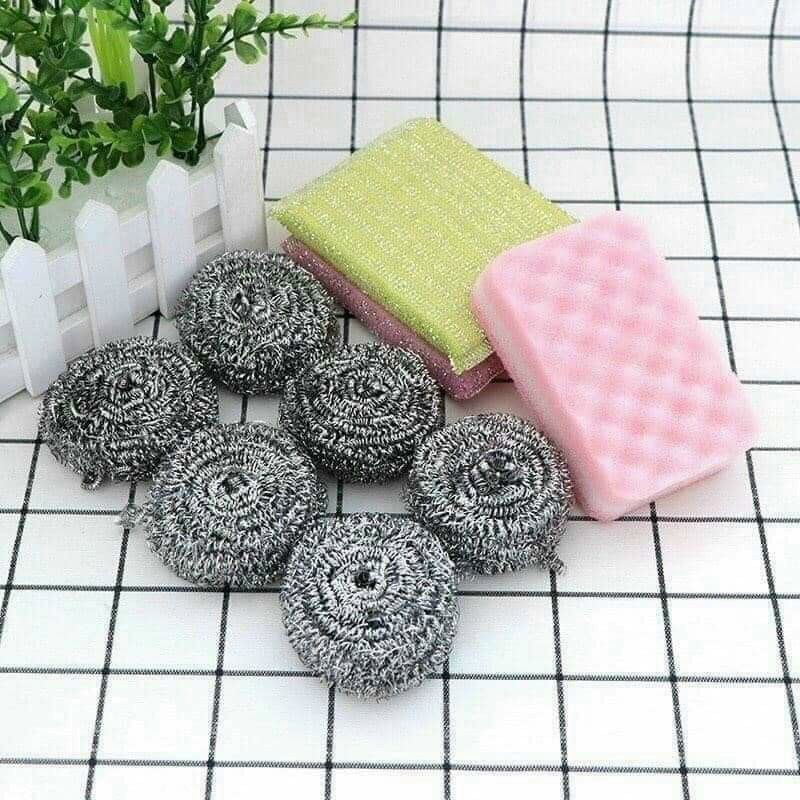 Set 9 miếng bọt biển , bùi nhùi thép cọ rủa xoong nồi , miếng chà vệ sinh đa năng