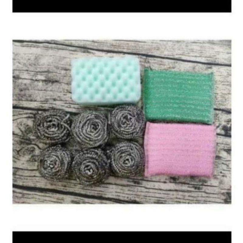 gói hàng bao gồm 6 miếng cọ sắt và 3 miếng mút rửa bát