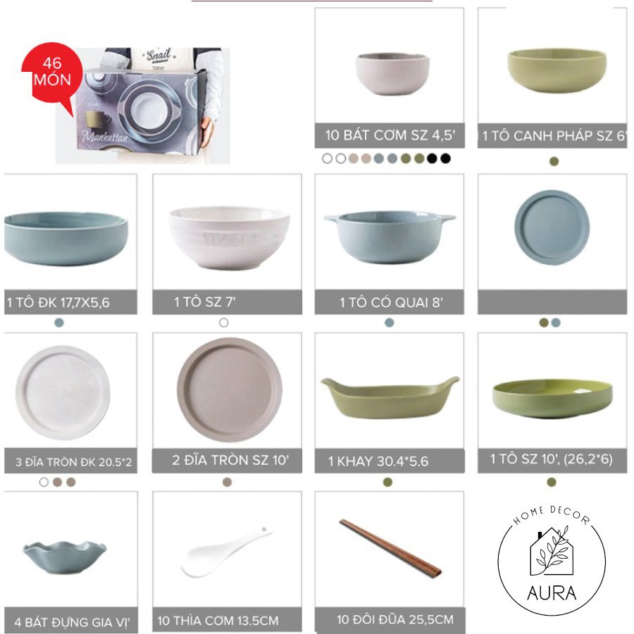 Set Bát 46 Món Nhiều Màu Phong Cách Bắc Âu - Sẵn Hàng - Giao Luôn
