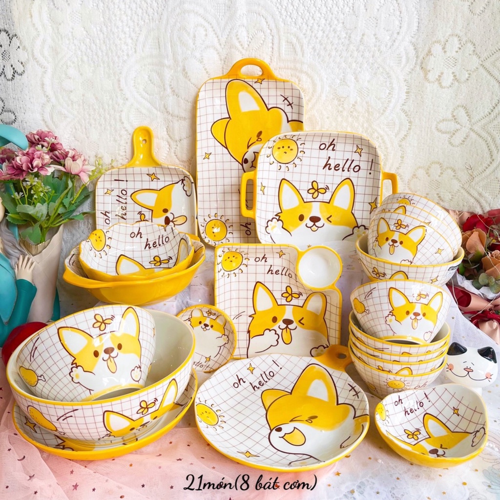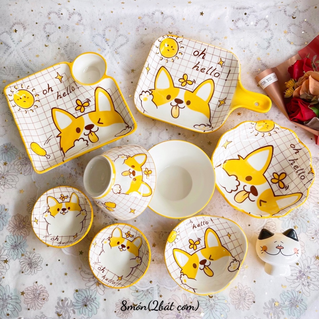 Set Bát Ăn Cơm Chó Siba Bộ Bát Đĩa Sứ Decor Chén Dĩa Sứ Cute Cao Cấp S171