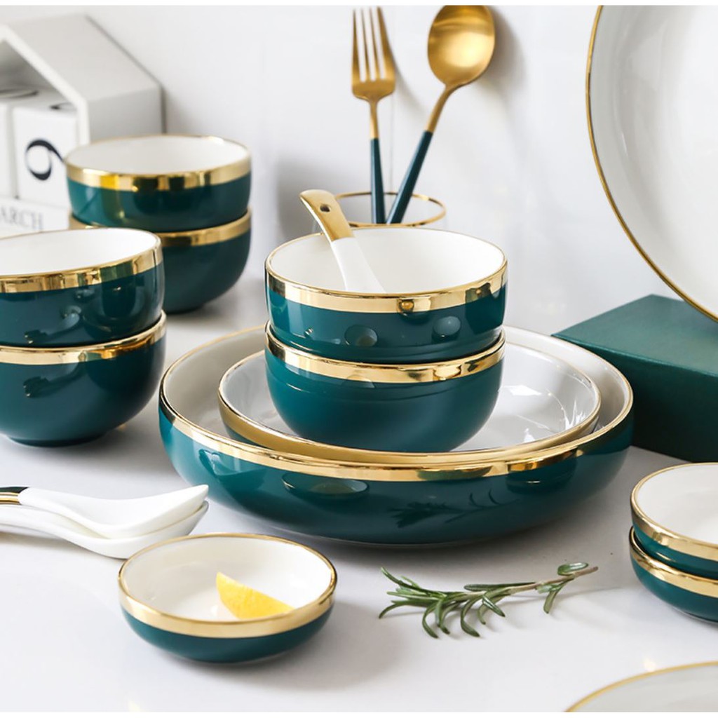 + Bộ bát đĩa được thiết kế sang trọng, hiện đại cùng màu sắc trang nhã, viền mạ vàng nổi bật chắc chắn sẽ tạo thêm sự trang trọng, lịch thiệp cho bàn ăn