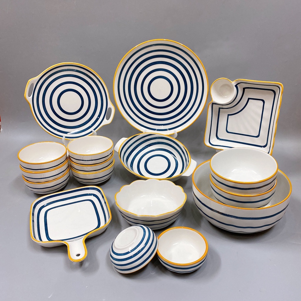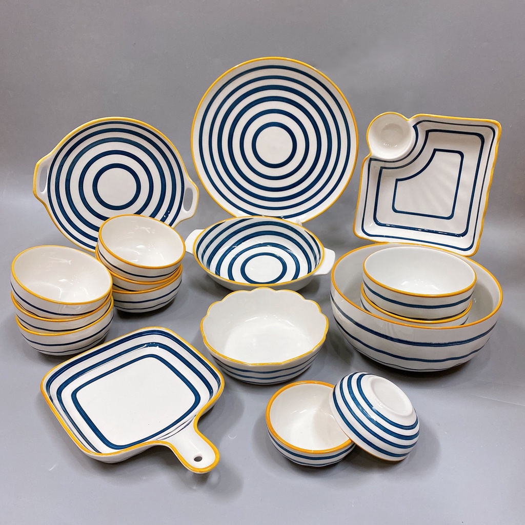 - Set bát đĩa có đầy đủ các món từ bát sứ, tô sứ, đĩa sứ, chảo sứ, bát ăn dặm,... đều đủ cả.