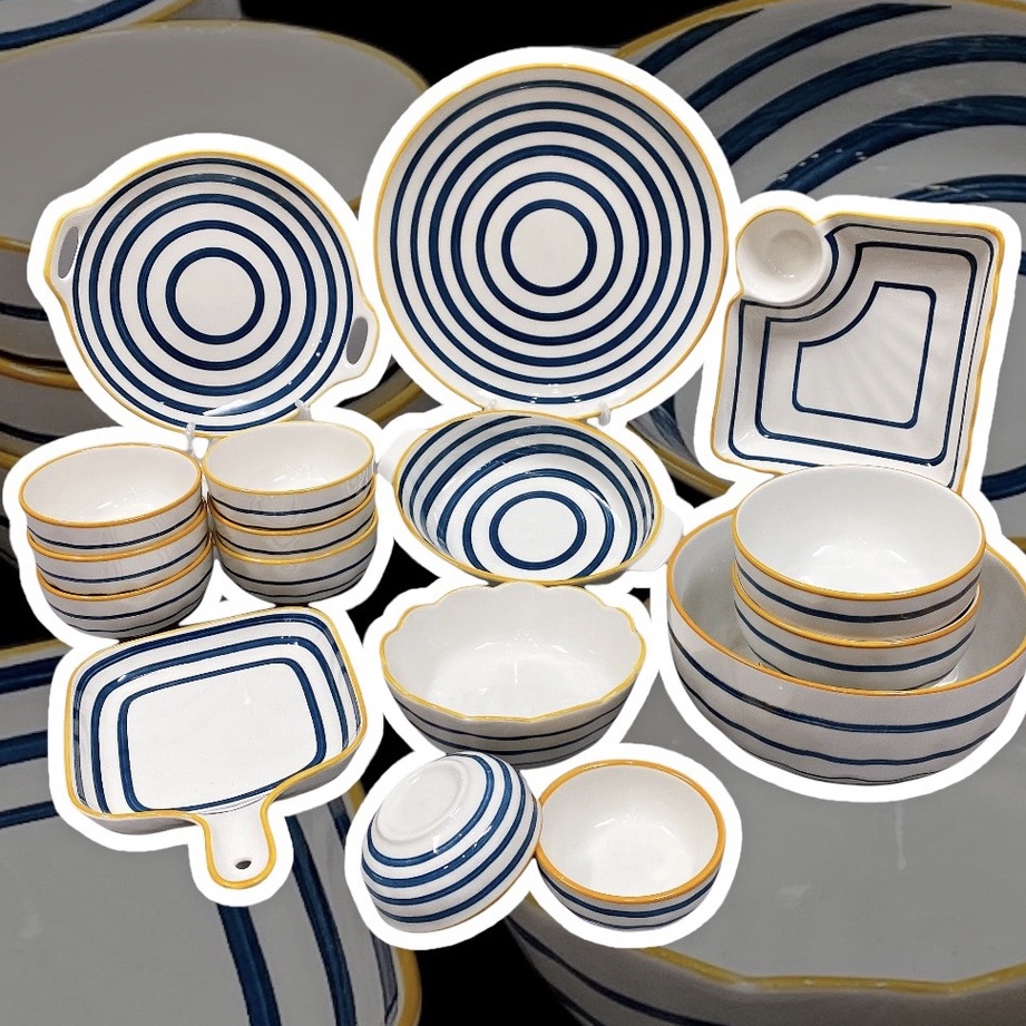Giới thiệu Set Bát Đĩa Chén Dĩa Sứ Viền Xanh Bát Ăn Cơm,ăn mì Tô Sứ Decor Dễ Thương