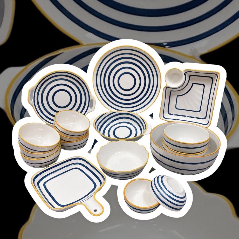 Nhà cửa & Đời sống > Bộ đồ bàn ăn > Tô || Set Bát Đĩa Chén Dĩa Sứ Viền Xanh Bát Ăn Cơm,ăn mì Tô Sứ Decor Dễ ThươngCòn hàng