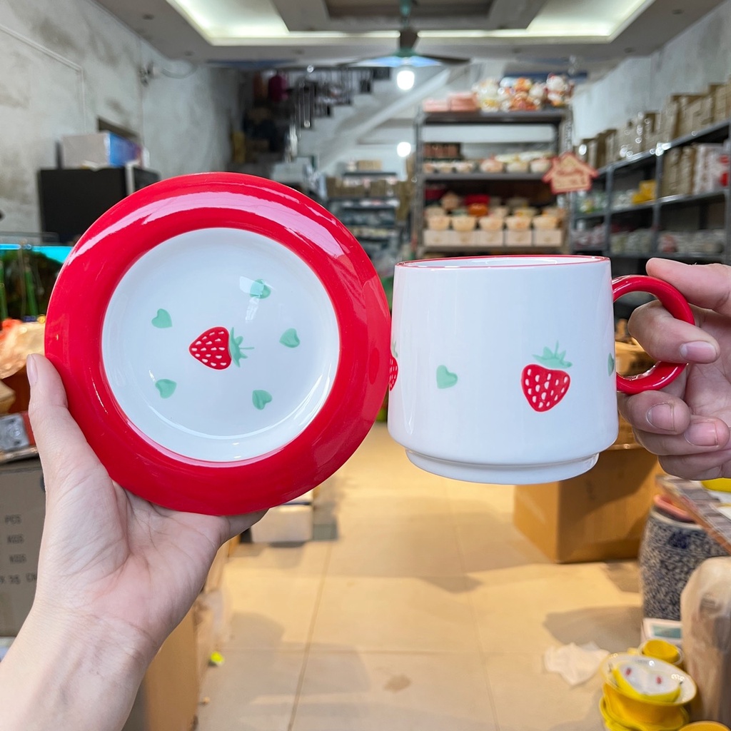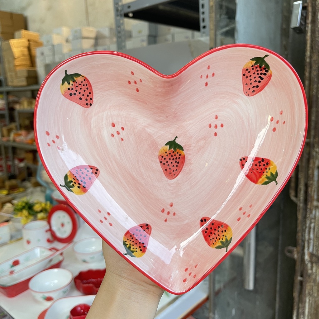Nhà cửa & Đời sống > Bộ đồ bàn ăn > Tô || Set Bát Đĩa Dâu Đỏ 11 món Bát Ăn Cơm Ăn Mì Chén Dĩa Decor Dễ ThươngCòn hàng