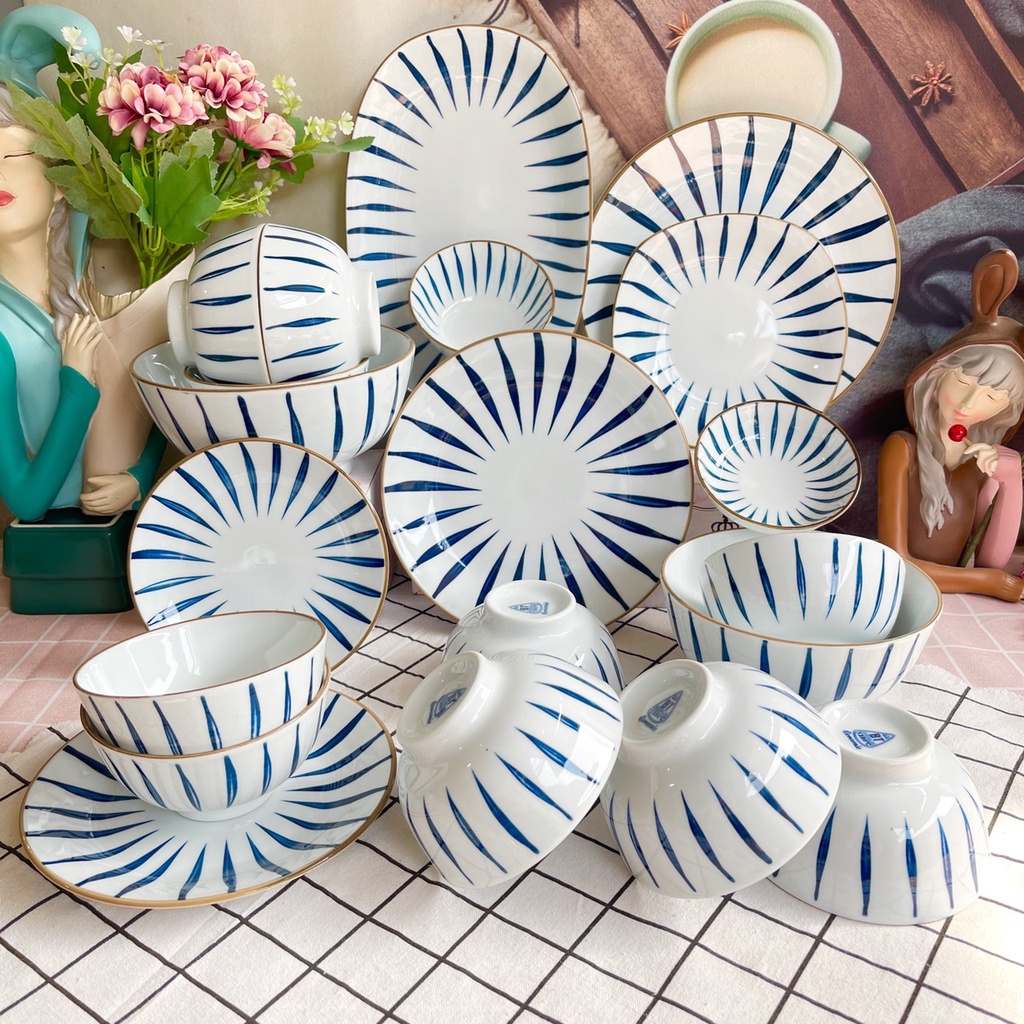 Giới thiệu Set Bát Đĩa Decor Bộ Chén Dĩa Sứ Dễ Thương Bát Ăn Cơm Kẻ Dọc Siêu Đẹp S155