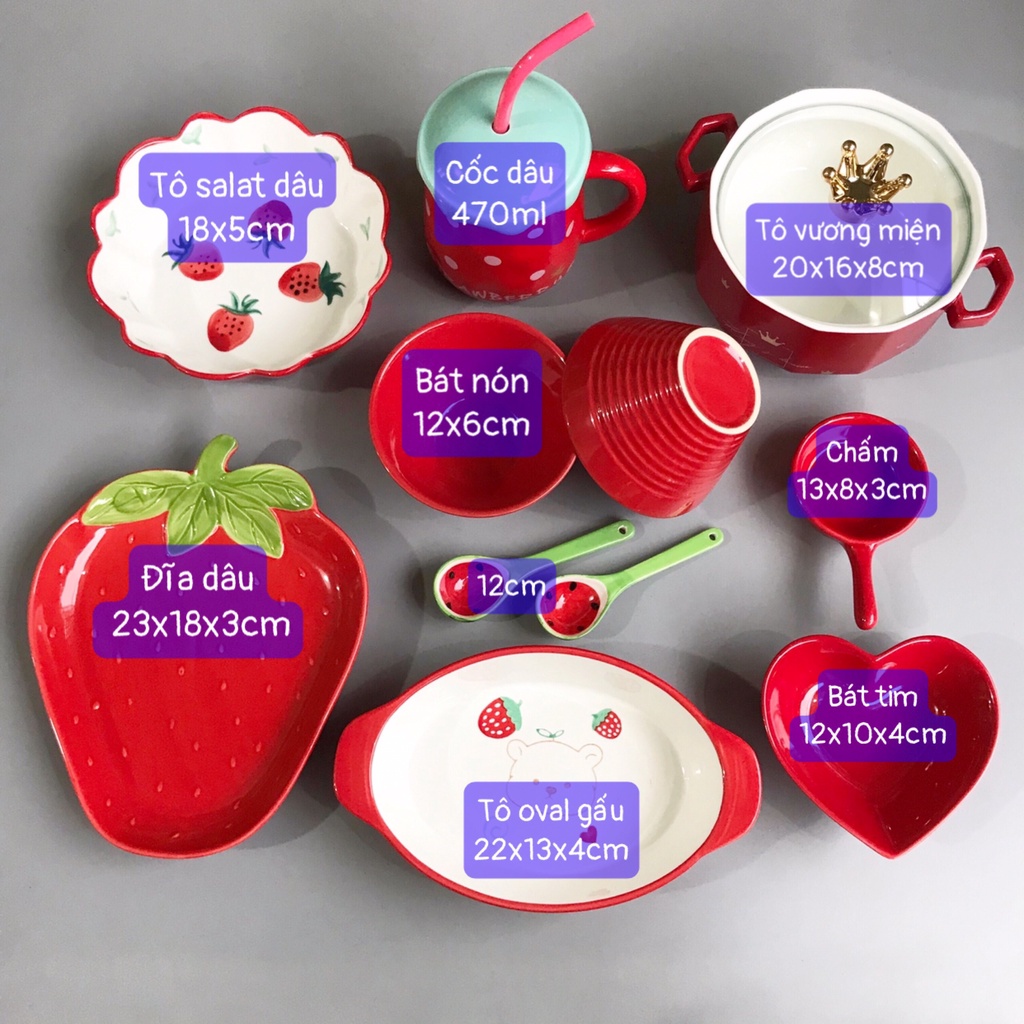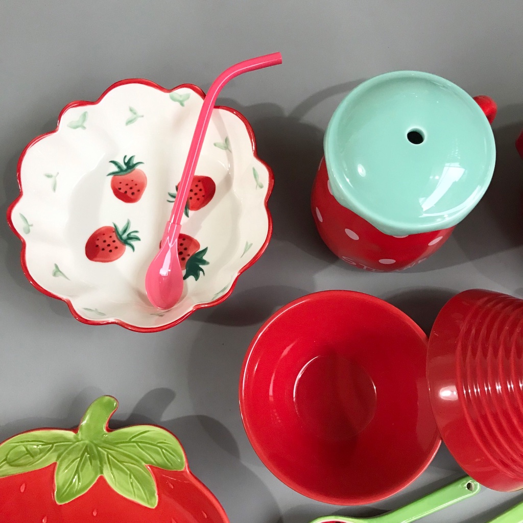 Nhà cửa & Đời sống > Bộ đồ bàn ăn > Dĩa || Set Bát Đĩa Đỏ Bát Ăn Cơm, Ăn Mì, Decor Bàn Ăn Dễ ThươngCòn hàng