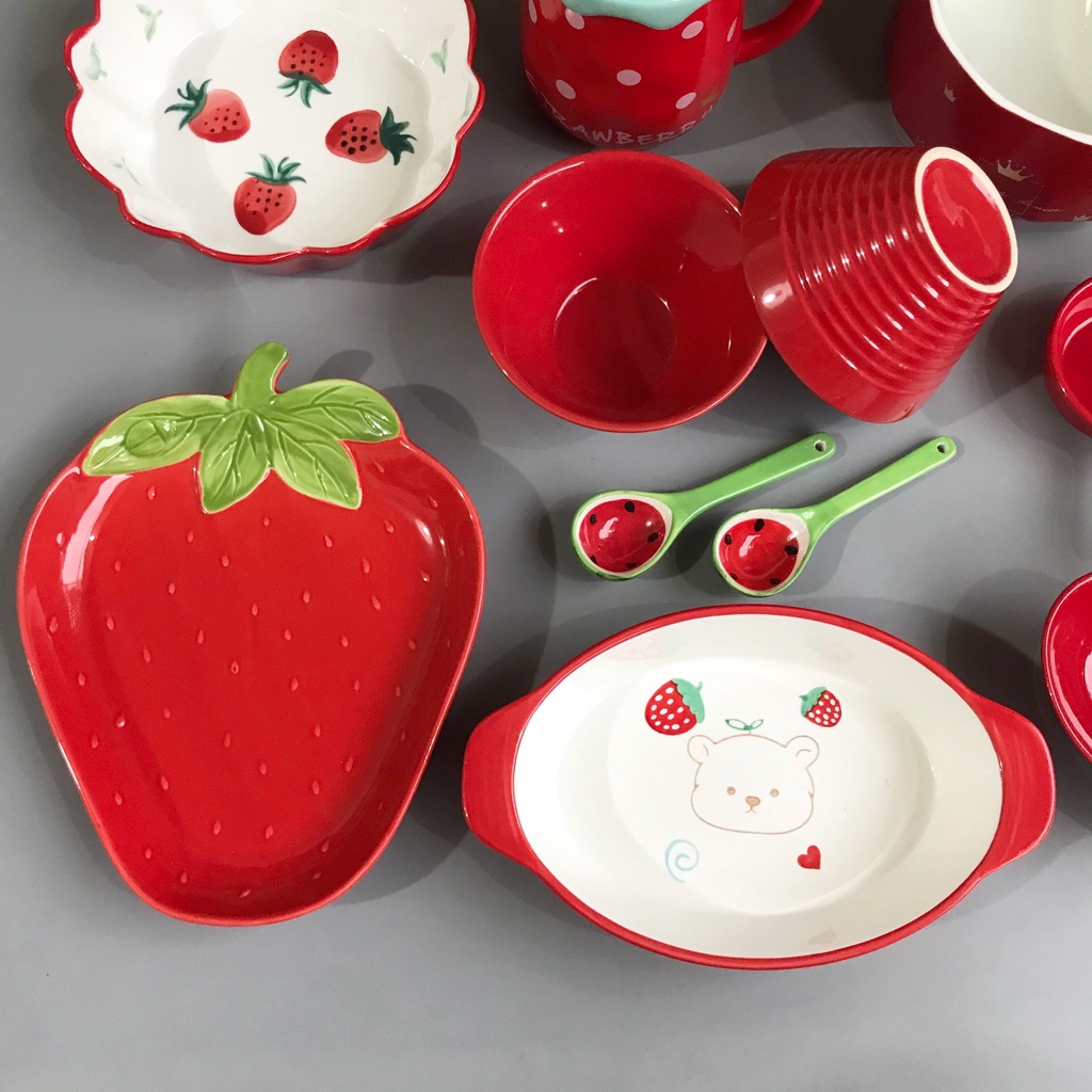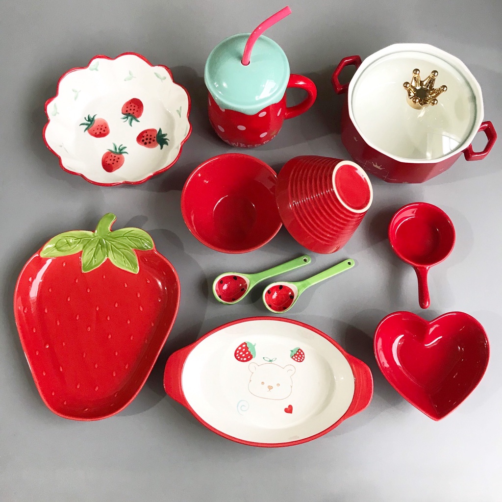 Set Bát Đĩa Đỏ Bát Ăn Cơm, Ăn Mì, Decor Bàn Ăn Dễ Thương