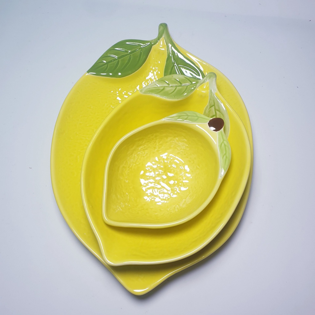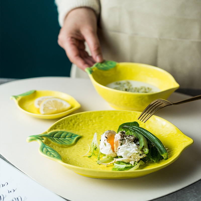 Set đĩa/dĩa hình quả chanh tây vàng lá xanh kèm bát nhỏ xinh xắn, đĩa đựng thức ăn cute✅ Thông tin sản phẩm