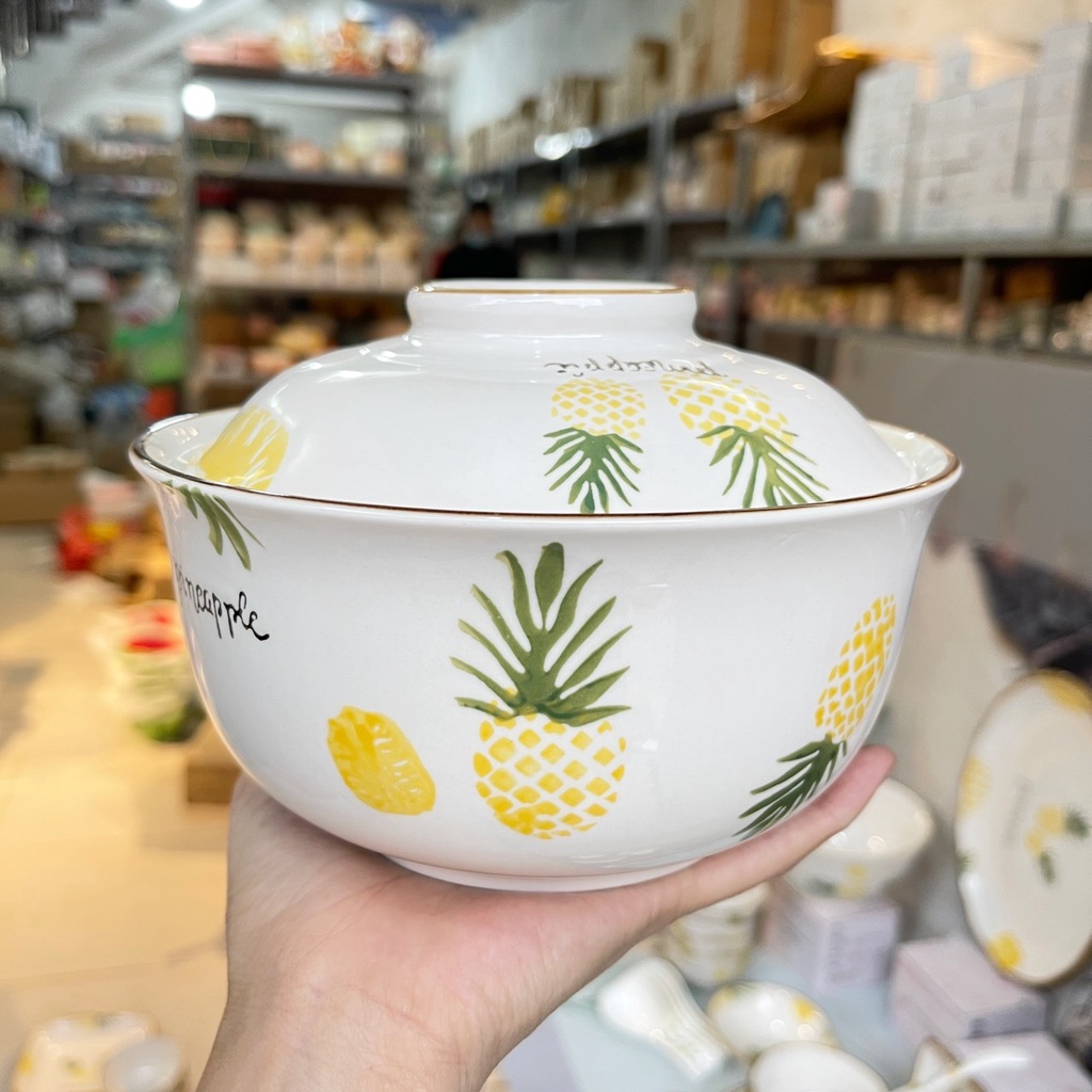 Set Bát Đĩa Sứ Dứa Vàng cực xinh, Bát Ăn Cơm, Ăn Mì Decor Dễ Thương B117
