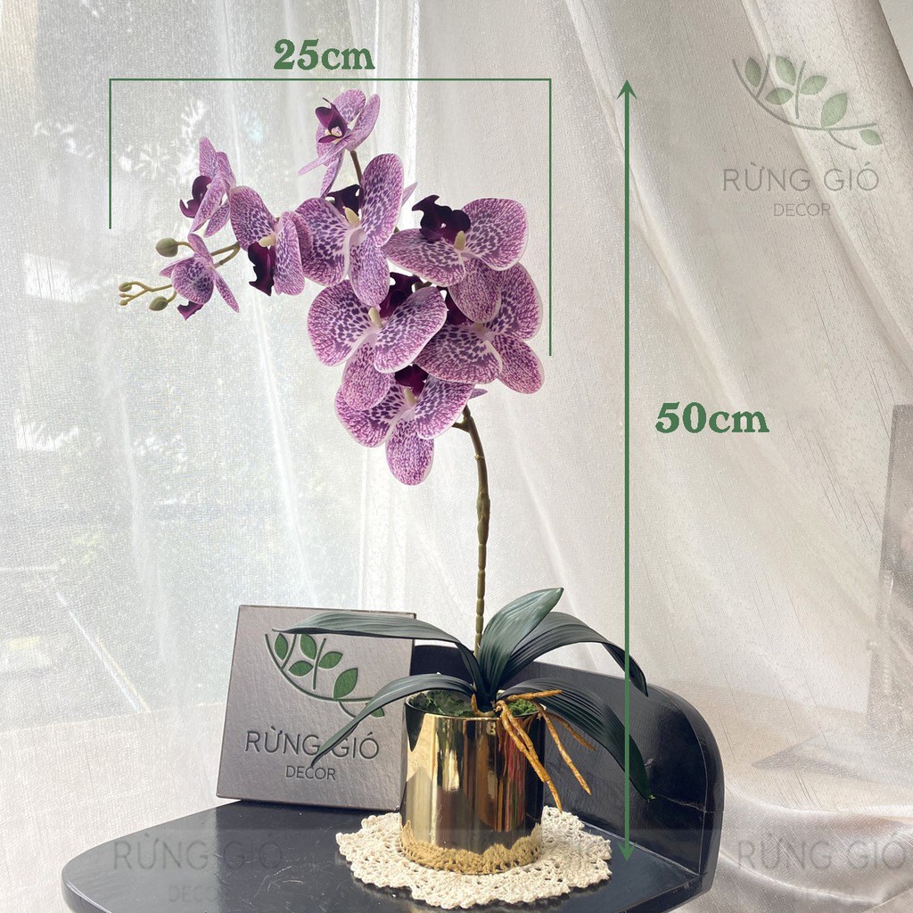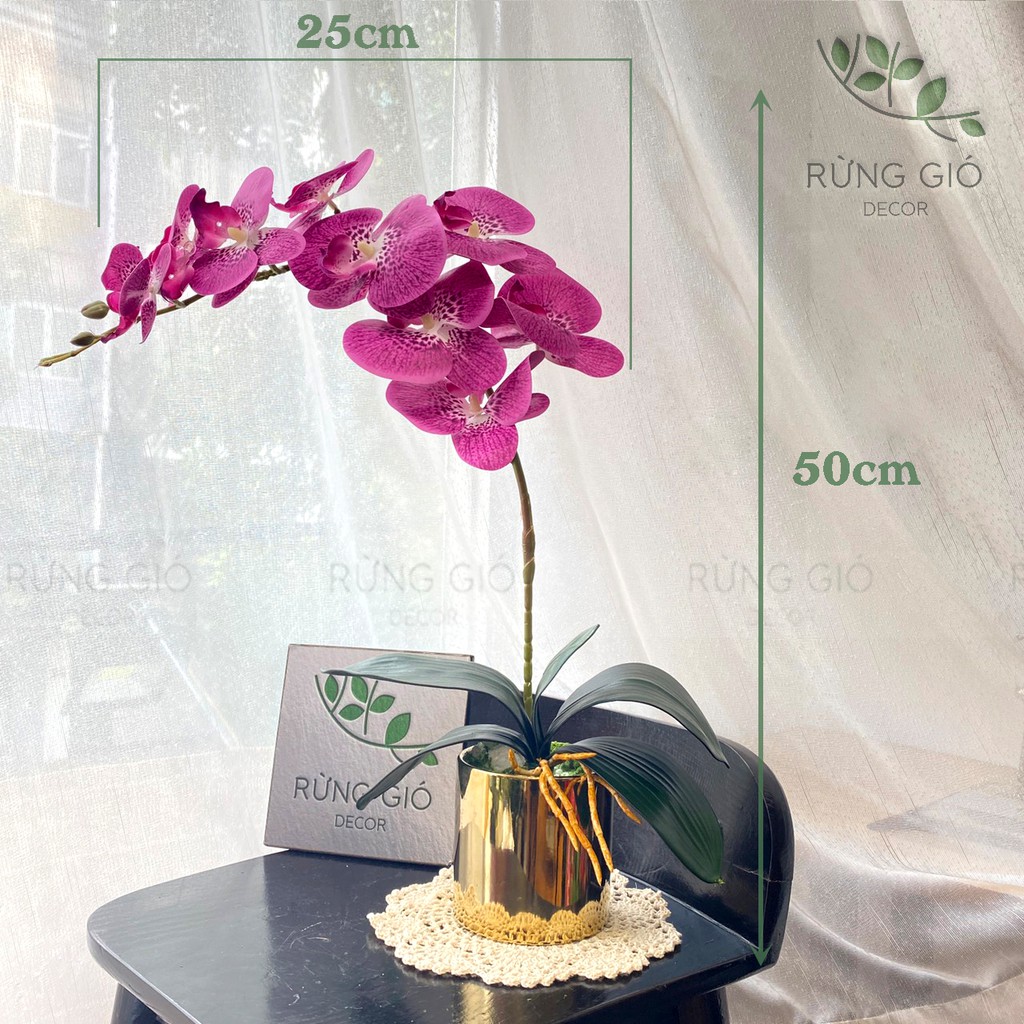 Nhà cửa & Đời sống > Trang trí nhà cửa > Bình trang trí || Set Bình Lan Hồ Điệp (gồm cả bình mạ màu vàng + 1 cành hoa 9 bông to), hoa lan cao su cao cấp mã Sét 11Còn hàng