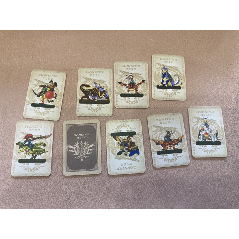 * Hiện tại, Game Monster Hunter Rise trên hệ máy Nintendo Switch chỉ mới scan được 3 thẻ là Palamute, Palico và Magnamalo để lấy Reward trong game (Reward là Layout Armour của Main, Palico và Palamute tương ưng với 3 thẻ), 6 thẻ còn lại thuộc series Monster Hunter Stories 1 trên hệ mày 3DS (vẫn scan được trong Monster Hunter Rise nhưng không có Reward đi kèm, Nintendo có thể update thêm sau này, nhưng chưa rõ thời gian)
