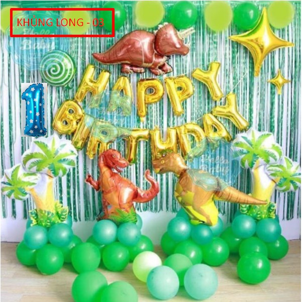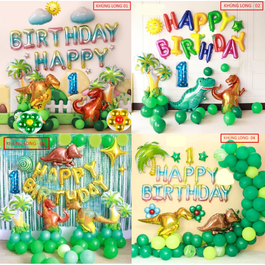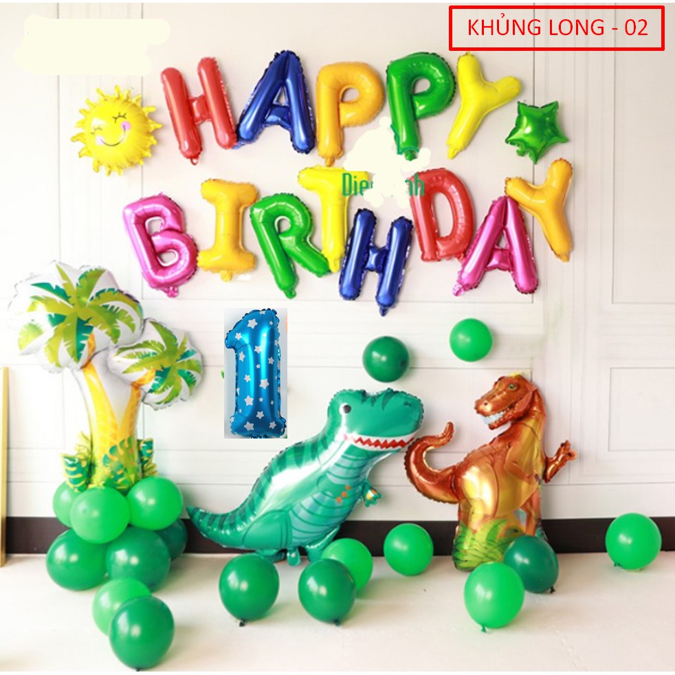 Set bong bóng Sinh nhật Khủng Long cho bé phụ kiện trang trí sinh nhật happy birthday