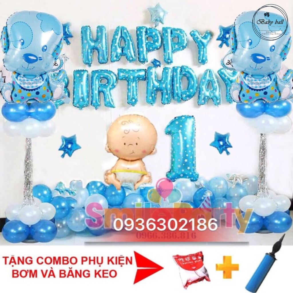Set Bóng Sinh Nhật Bé Tuổi Cún 2 Tuổi gồm:- 1 bộ chữ Happy Birthday ( các mẹ có thể chọn màu)