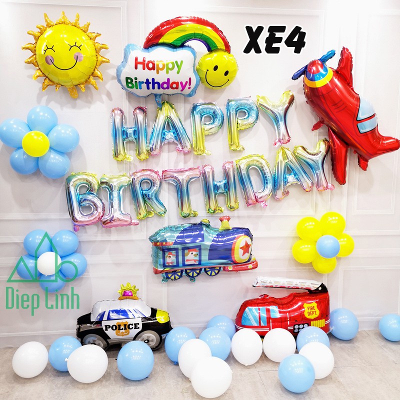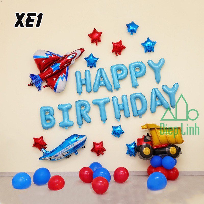 Sét Bóng Trang Trí Hình Xe Ô Tô Giao Thông Máy Bay Cho Bé Trai - Diệp Linh
