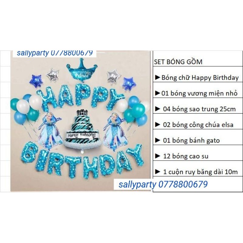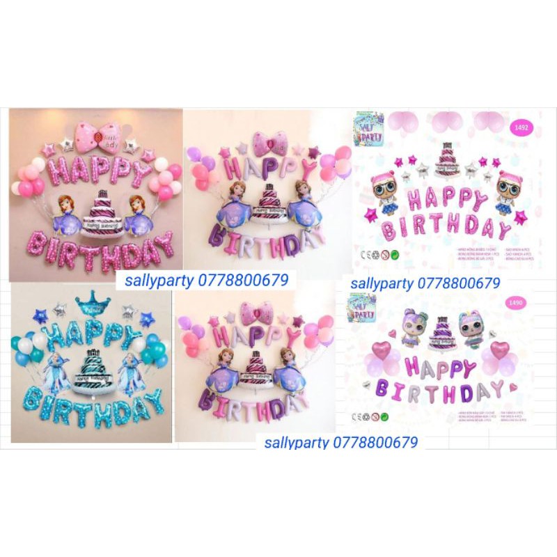 Set bóng trang trí sinh nhật công chúa elsa, sofia, búp bê