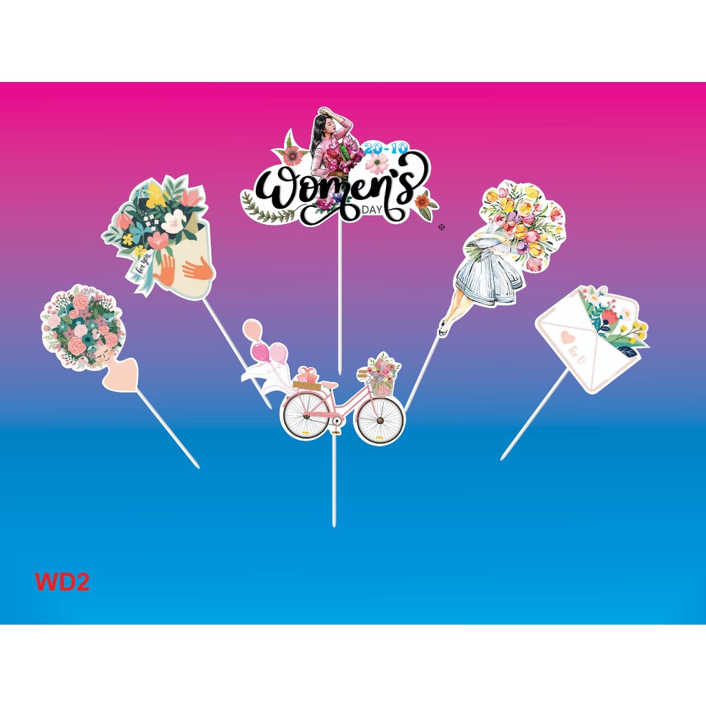 Set cắm giấy chủ đề 8 tháng 3 ngày phụ nữ, happy women's day, trang trí bánh sinh nhật