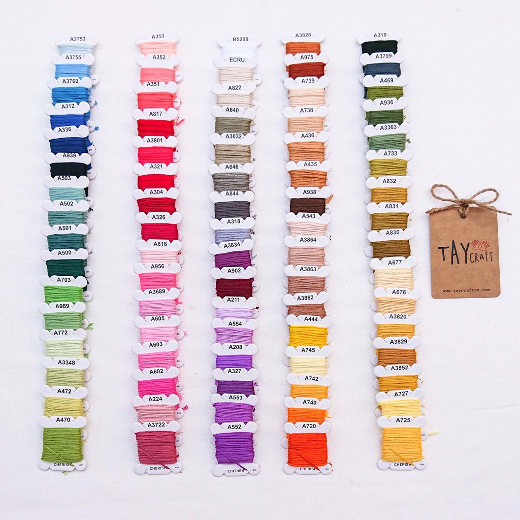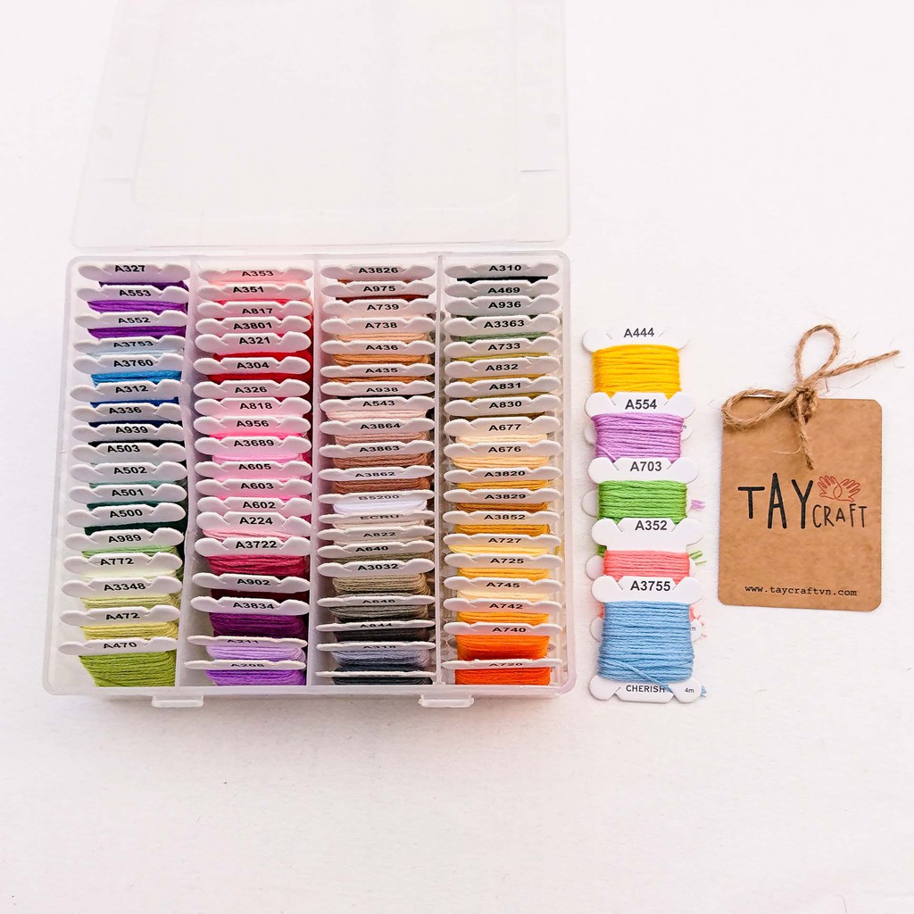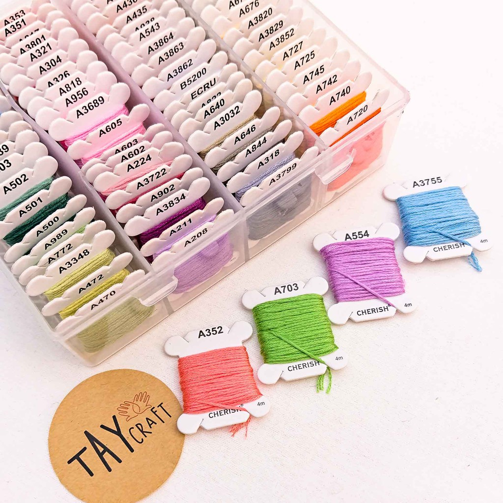 Sở thích & Sưu tầm > Dụng Cụ May Vá || Set chỉ thêu Cherish 80 màu quấn sẵn (kèm hộp đựng)Còn hàng