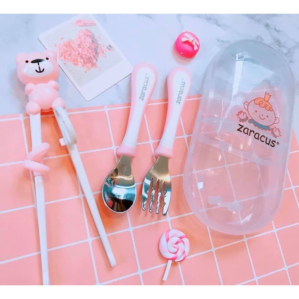 Set đũa + thìa + dĩa inox Zaracus Hàn Quốc Chính Hãng cao cấp không rỉ, có hộp cho bé yêu