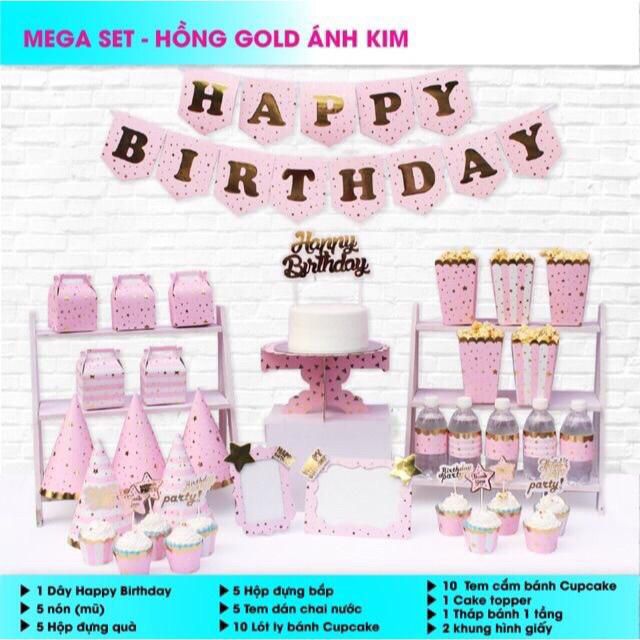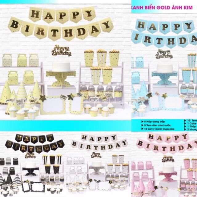 📌Set Ánh Kim bao gồm :- 15 lá cờ Happy Birthday