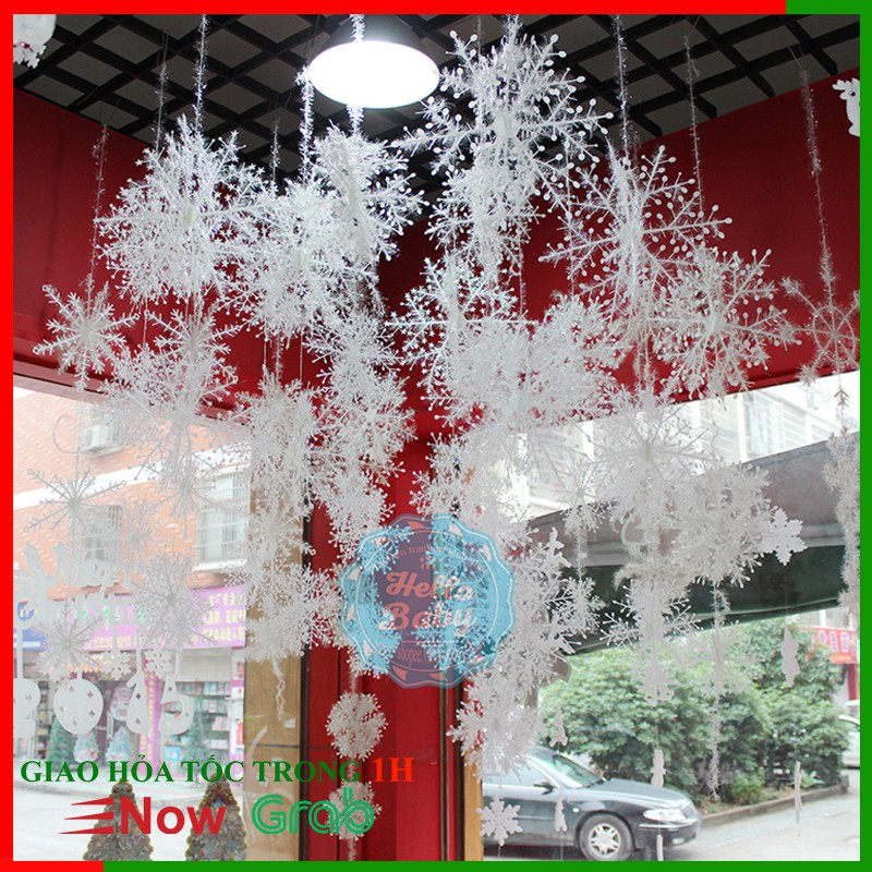 Hoa tuyết trang trí Noel từ lâu đã là phụ kiện không thể thiếu dùng để trang trí những cây thông, tường, kính, treo giữa nhà tạo khung cảnh như những bông tuyết đang rơi ...• Chất liệu: Nhựa