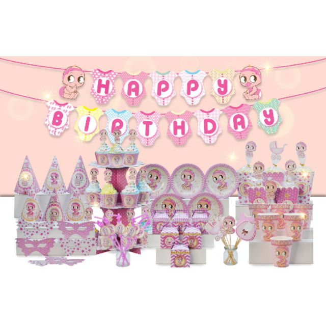 Set MEGA trang trí sinh nhật chủ đề Baby girl, em bé gái