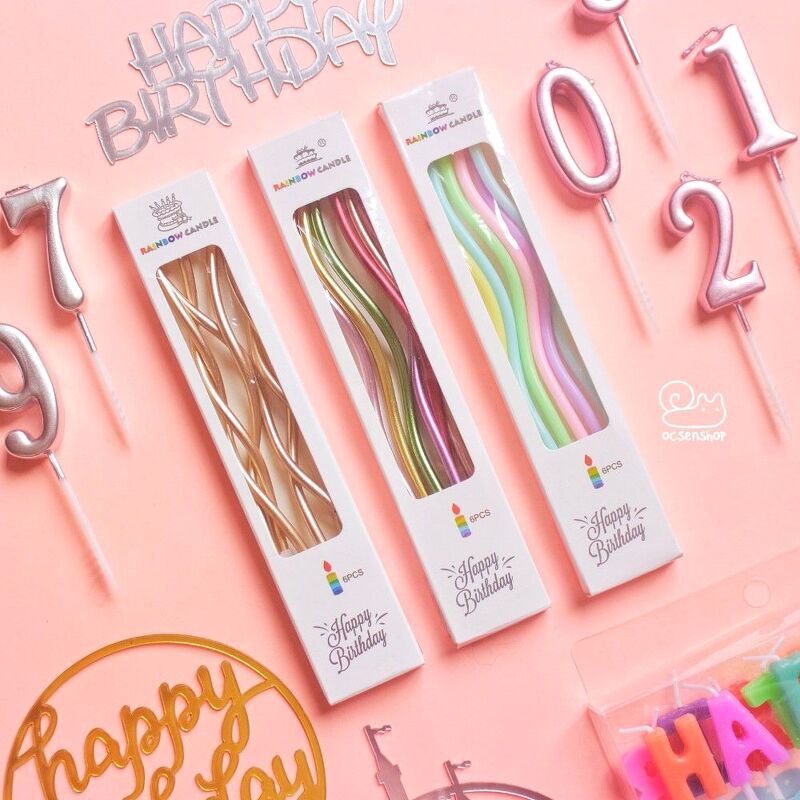 Nhà cửa & Đời sống > Trang trí nhà cửa > Nến & đồ đựng nến || Set nến cong Rainbow Happy Birthday (6c)Còn hàng