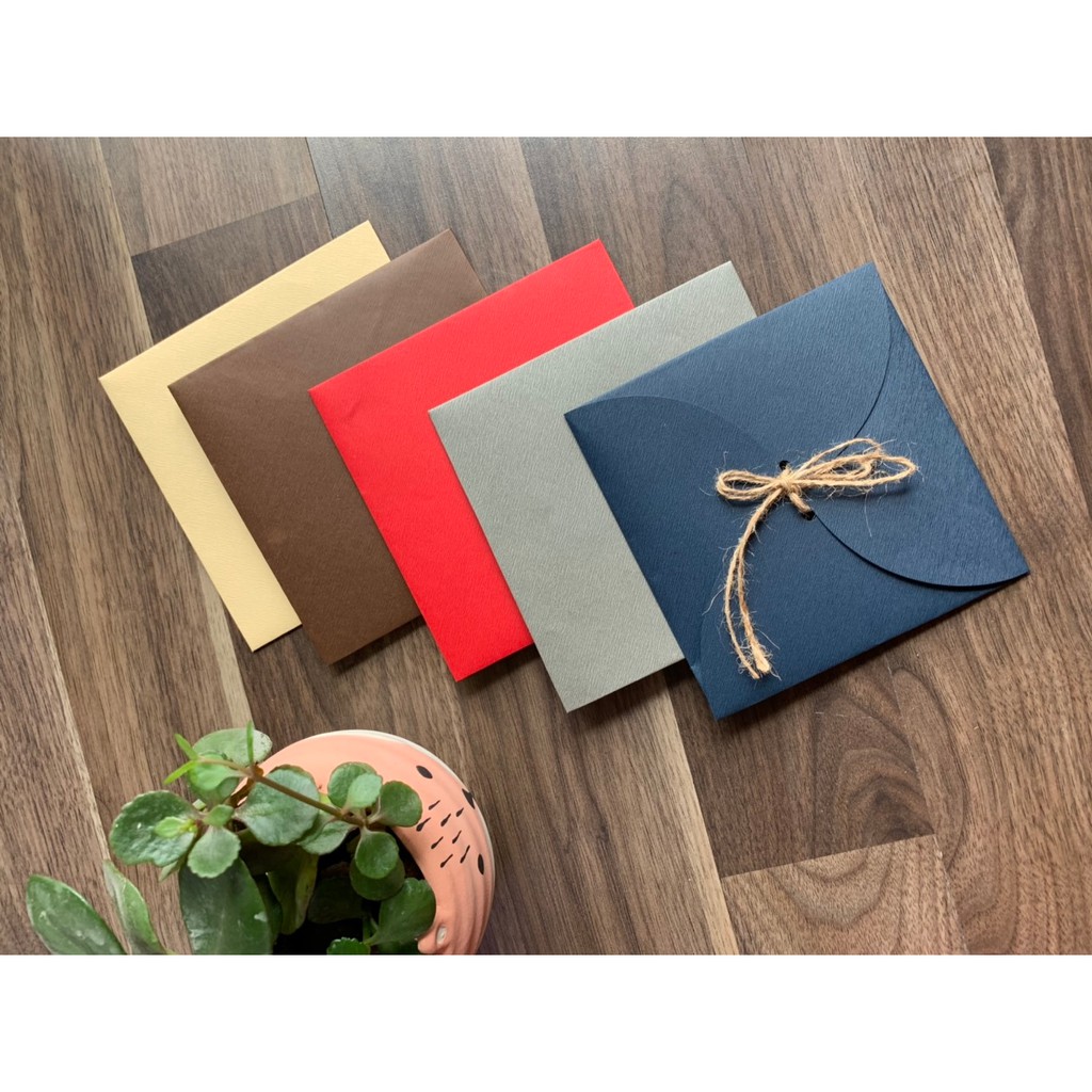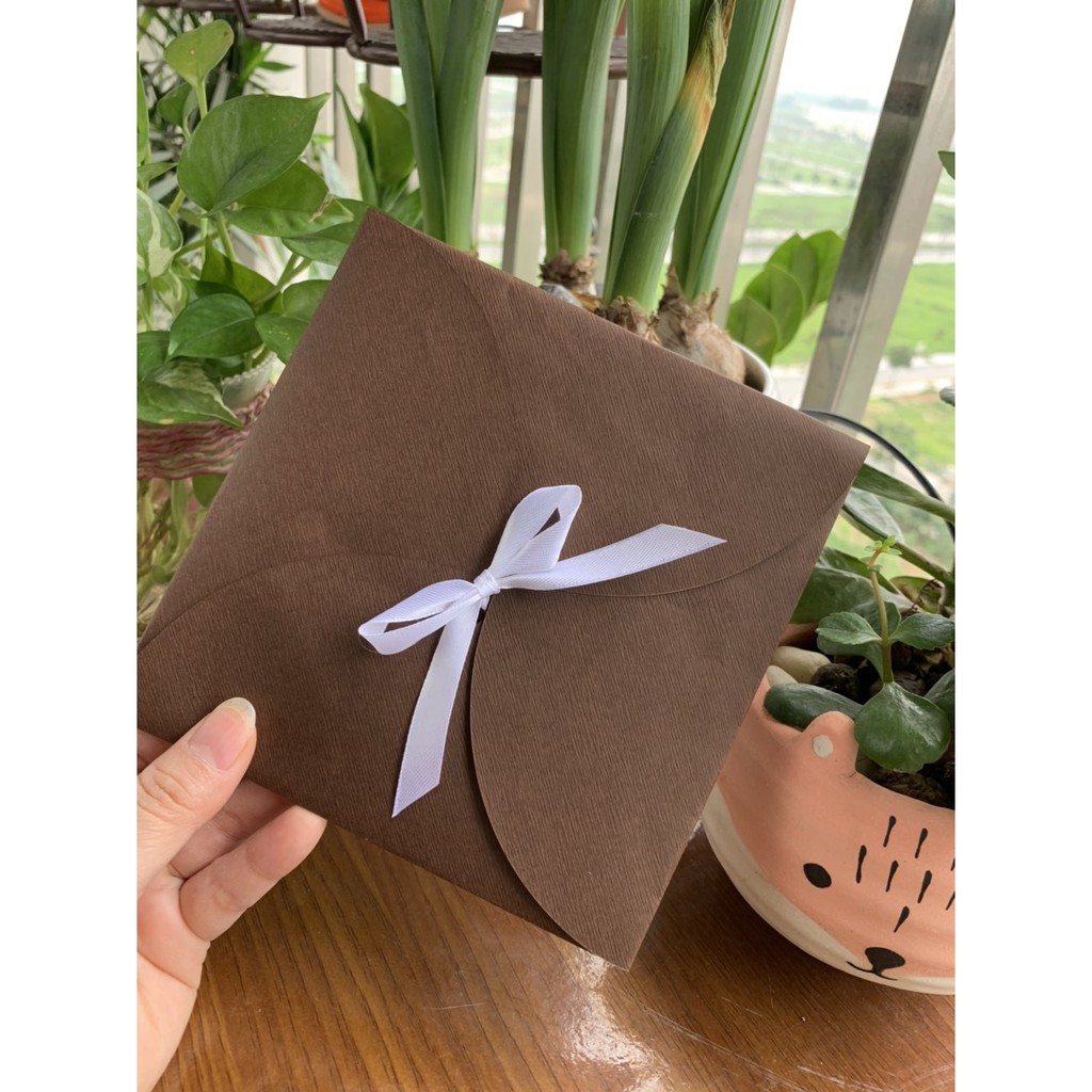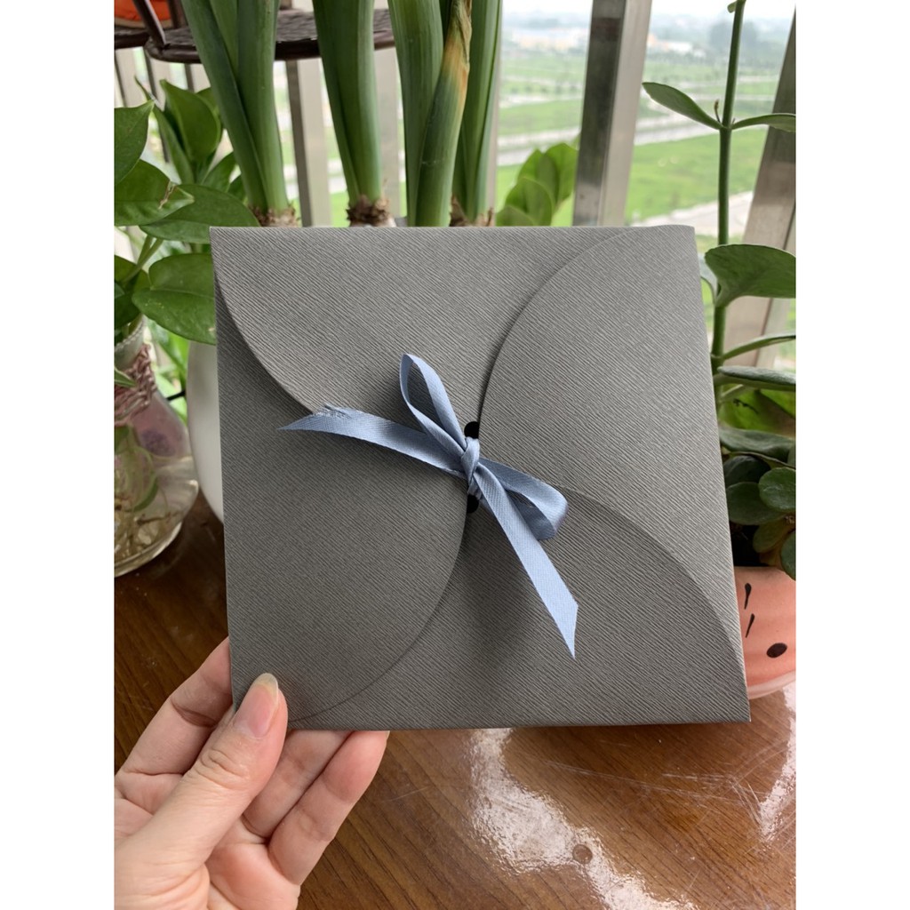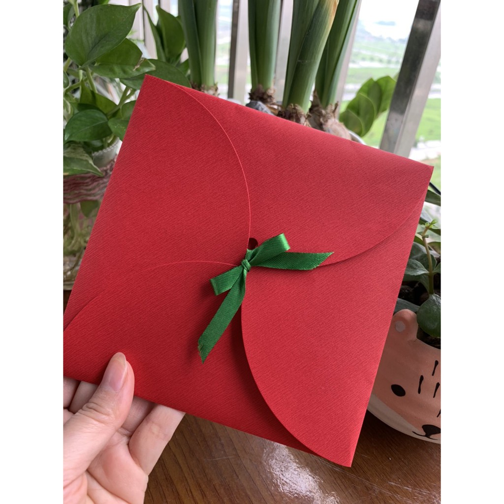 Phong bì vuông, gấp hoa, có thể cài thêm nơ theo phong cách Hàn Quốc.Kích thước: 15x15cm